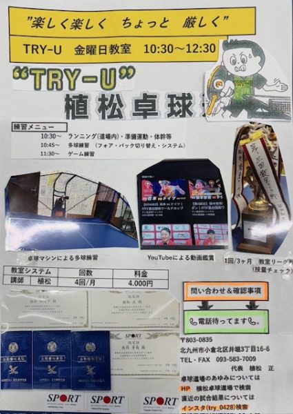 TRY-Uでは、幼児、小学生から卓球を始める生徒を募集しています。